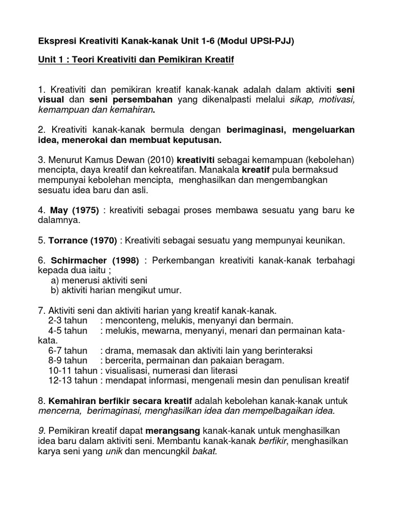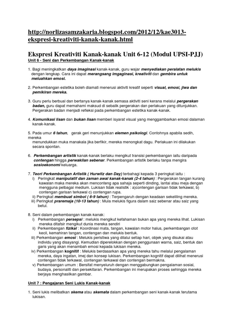 Nota Ekspresi Kreativiti Kanak Pdf